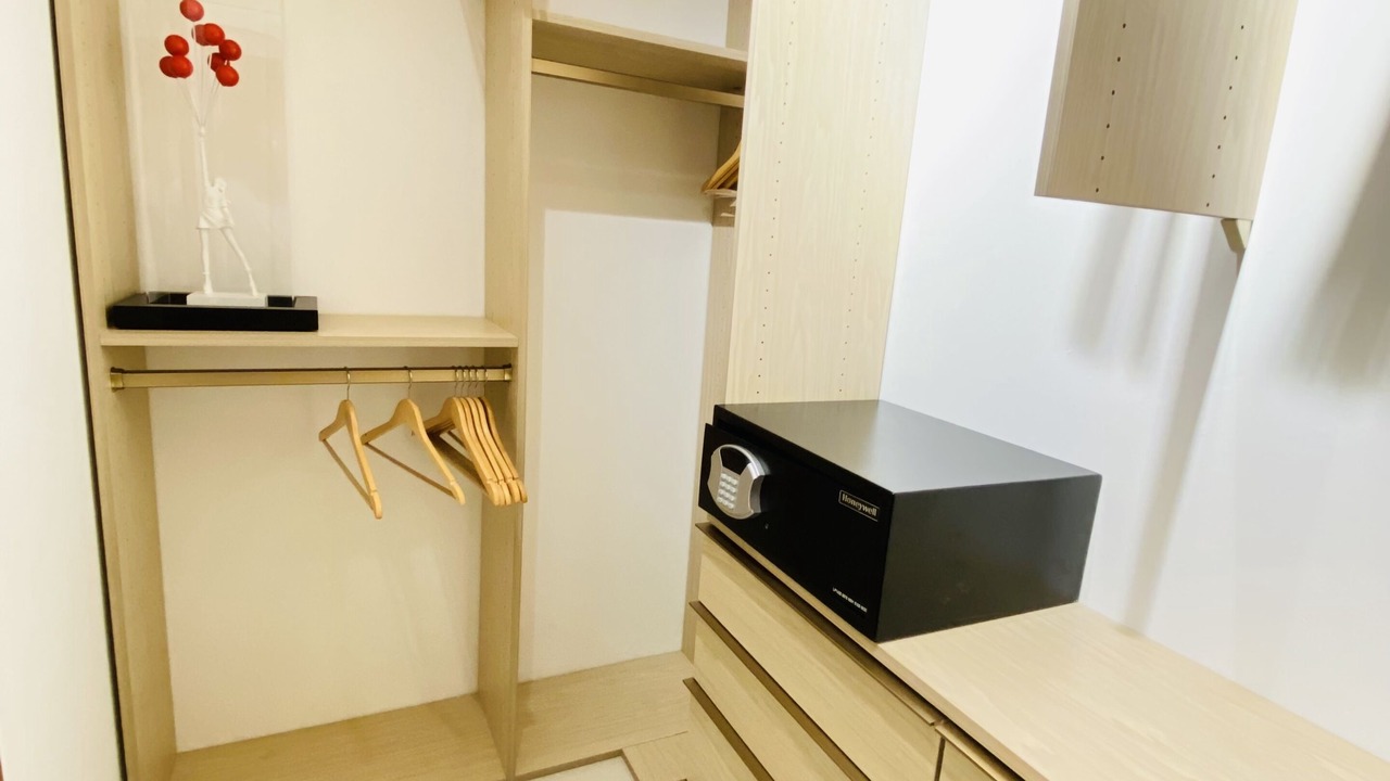 For your convenience, there's an oven and a microwave. Bathroom amenities include a hair dryer, towels, and toilet paper. And because there's a washer and dryer, you can go a bit lighter on your packing. Other amenities include bed sheets, an ironing board, air conditioning, and heating.