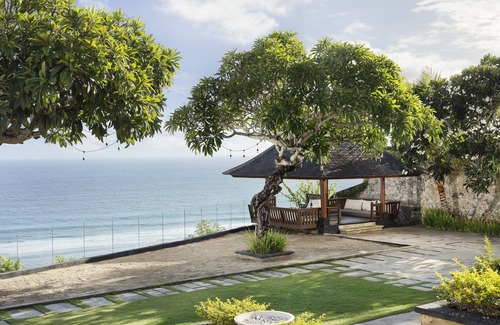 Ocean views villa on the edge of sea cliff. This spacious 7-bedroom ensuite bathrooms accommodate up to 14 guests. The massive open-air dining and living spaces and natural Balinese interiors make an ideal setting for a party and lively conversation while the cabana that overlooks the ocean is the perfect spot for quiet contemplation and that to relax. Each bedroom opens up to a mesmerizing view of the ocean, an infinity pool, a jacuzzi, and an outdoor lounge furnished with cozy daybeds.