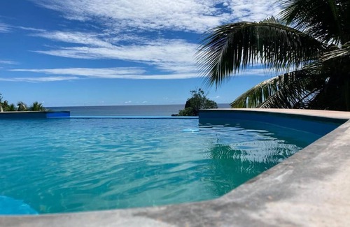 Maison Vue Des Iles has the character and appearance of a traditional plantation property. The shared private drive is gated and the gardens have a fine collection of tropical plants. Behind this impressive self catering villa is a wind-cut granite outcrop covered in Bougainvillea. The interior is a real contrast, the decor is a modern take on colonial style, with white walls and sofas softened by wooden floors and furniture, a mezzanine level doesn't obstruct a view upwards 30ft to the rafters. There are huge oil paintings by local artists (including our famous neighbour Raymond Dubuisson) to provide colour, none however can compete with the vivid turquoise of the sea that can be seen straight ahead through the veranda doors. Stepping through is breathtaking, locals believe there is no more beautiful spot on what is a tropical island paradise. The property has a range cooker, fridge, dishwasher, laundry and library. Most of your time will be spent outside relaxing in the infinity plunge pool, snorkelling in the ocean or looking at it from the pool, sun deck or veranda.