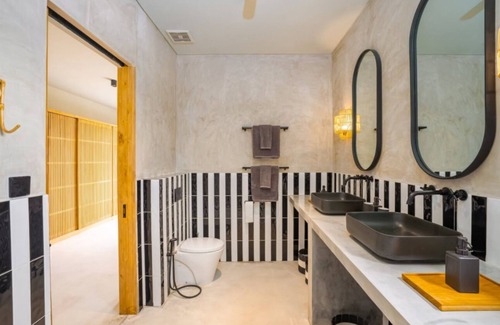 Badung is waiting for you at this fabulous 4-bedroom villa. Each bedroom features a queen bed, ensuring a phenomenal night's sleep for all guests. With 5 bathrooms equipped with showers and hair dryers, getting ready for the day is a breeze. The living room offers a cool space to relax, complete with a sofa bed for additional sleeping arrangements. We're happy to assist with any questions while you stay at our villa.