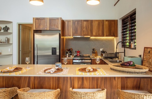 Enjoy this spacious Villa with high vaulted ceilings, 2 en-suite rooms with both indoor and outdoor showers in room-you choose! Beachside!! The Perfect Villa for-family, a couple(s), or solo traveler! Large pool, volleyball net, golf cart, corn hole, Stand Up Paddle Board, Bikes-Tons of fun for everyone! Full time caretaker for all your needs or privacy if you need it. Tranquil, secluded if you want to be, or stroll down to the local marina, restaurant and resort!