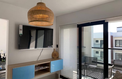 Enjoy a refreshing and comfortable stay in this stylishly furnished apartment, ideal for long-term stays. Located just steps from the beach, this space offers pure comfort: a fully equipped kitchen, a private balcony perfect for relaxing, air conditioning, WiFi, and everything you need to feel at home.