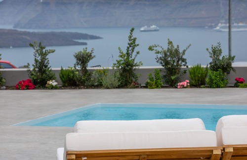 Melidonia Suites is located in Akrotiri Santorini overlooking the views of Caldera. Bask in an elegant and comfortable environment! Create memories with friends or family in this large villa. This villa is on two levels with an exterior stairway, it can accommodate 2 to 6 persons, has three double beds and two bathrooms. The kitchen is well equipped and the terrace overlooks the caldera and the volcano equipped with heated swimming pool and indoors jacuzzi.