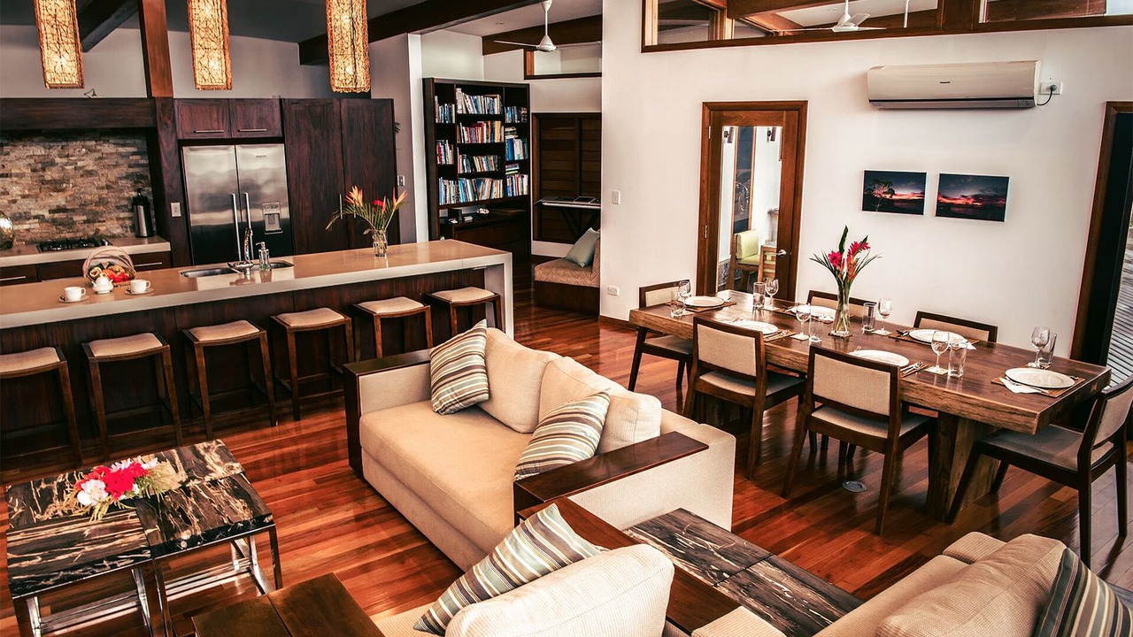 Newly constructed, this beautiful villa has 3 bedrooms, 4 beds and 3.5 baths and can hold a maximum of 10 guests. The property is set on a over 100 acres of land that has access to your own black sand beach.