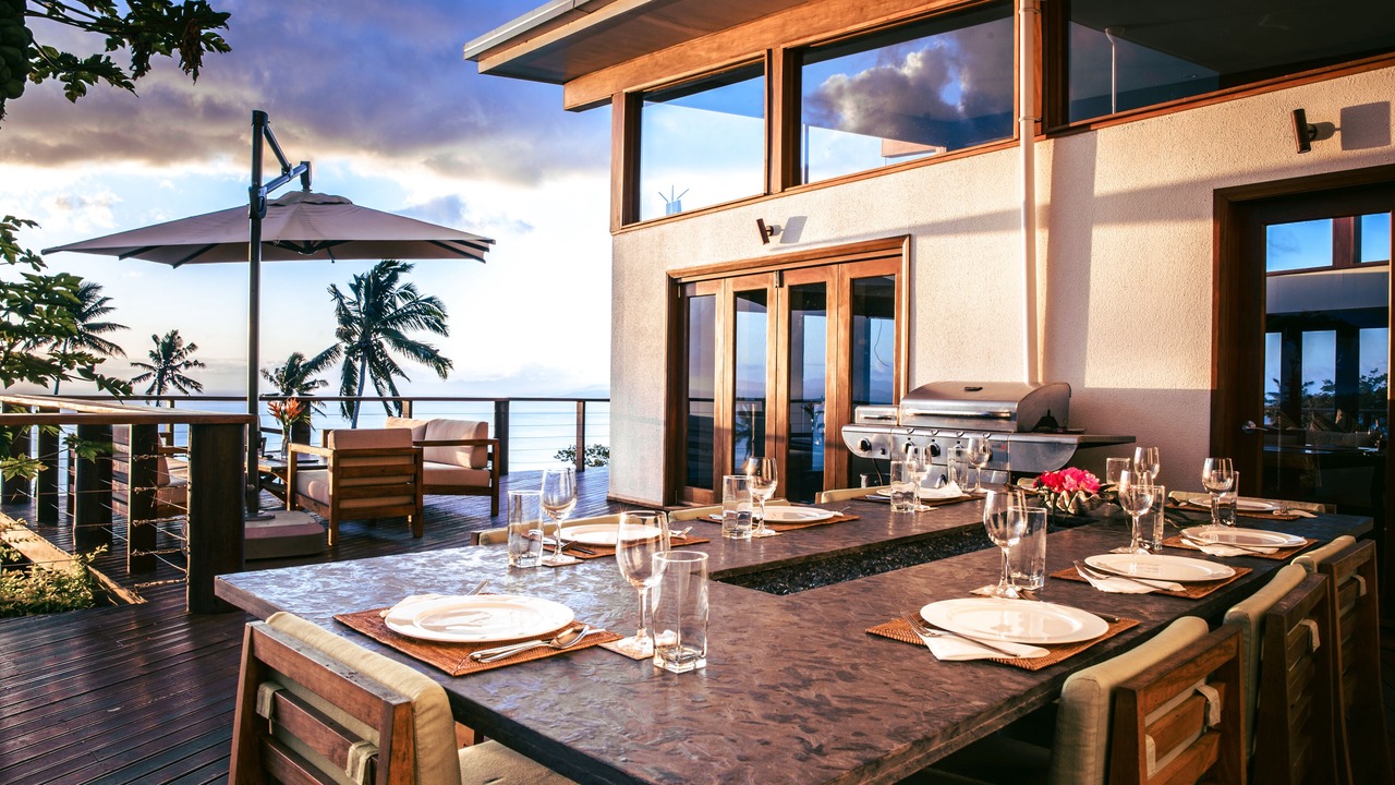 Your included breakfast, lunch, dinner and snacks are prepped in our off-site commercial kitchen and prepared by your chef right in front of your eyes. Also included are non-alcoholic beverages such as water, juices and soft drinks. Breakfast and lunch will be served in a buffet style when 4 or more guests, sit down is available with fewer guests. Dinner will be a sit-down service dinner. All our ingredients are locally grown and sourced bio ingredients, most coming from our own farm in the highlands of Taveuni. All our seafood is locally and sustainably caught. Our beef is sourced on the island, were the cattle is all grass fed and finished. Other ingredients like lamb and green mussels are imported and flown in from New Zealand. We will accommodate all your food allergies. Alcoholic beverages can be purchased for you from our extensive list prior to your arrival.