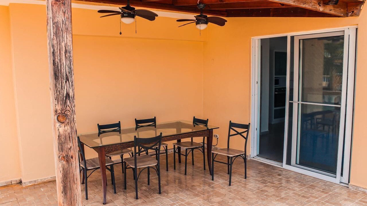 Welcome to Las Palmeras Residence a beautiful gated resort community located in the most exclusive area of Boca Chica. This sea-front location is just 350 yards from Boca Chica beach, close to restaurants, Casino, and shops, and 5 minutes from Las Americas International Airport. Enjoy the beautifully landscaped and maintained grounds including a garden, pool, and secure parking. The unit offers 2 bedrooms and 2 full baths and the most amazing wrap-around outdoor veranda with an ocean view. Spacious, clean, and comfortable! The location can't be beat.