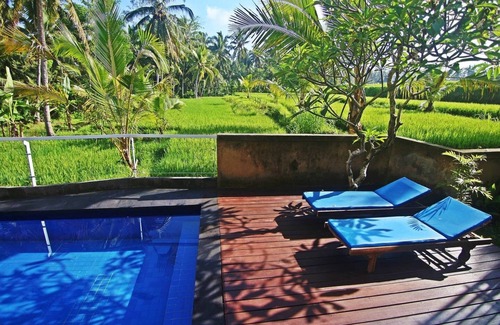 **THE VILLA IS IN THE MIDDLE OF RICEFIELDS, WITH A SMALL ROAD BUT ACCESSIBLE BY CAR** Our villa complex located in a quiet place just 10 minutes to central ubud, we provide free scheduled shuttle to Ubud Central Each villa has private swimming pool with ricefields view