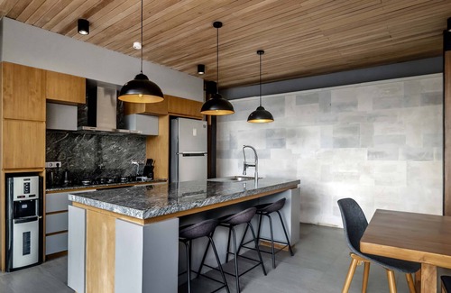 With a fully-equipped kitchen and chic furniture making for a pleasant mix of domesticity and tastefulness.