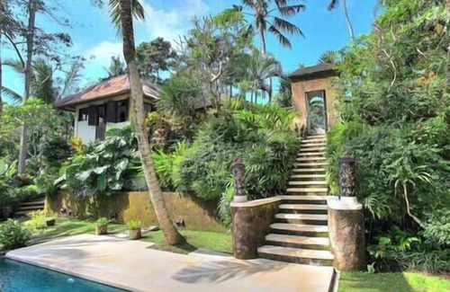 Perched high on a river gorge near Bali's cultural centre, Ubud, Villa Alamanda's graceful architecture harmonises with its dramatic tropical environment. Inside, elegant teak furniture is complemented by clean lines, natural colours and local artwork. A sizeable, open-air lounge and dining terrace overhangs the jungle, creating interaction with the stunning scenery. This classic Bali villa sleeps up to eight people in four stylish ensuite bedrooms. Steps from the villa's living area lead down into the garden where the swimming pool and bale provide the perfect spots for relaxation. The garden is large enough for children to play and for entertaining.